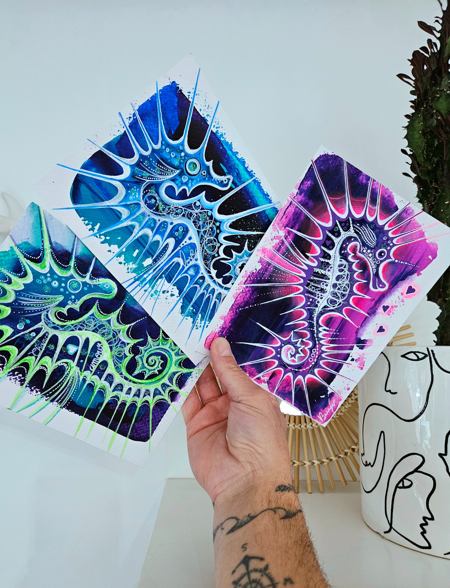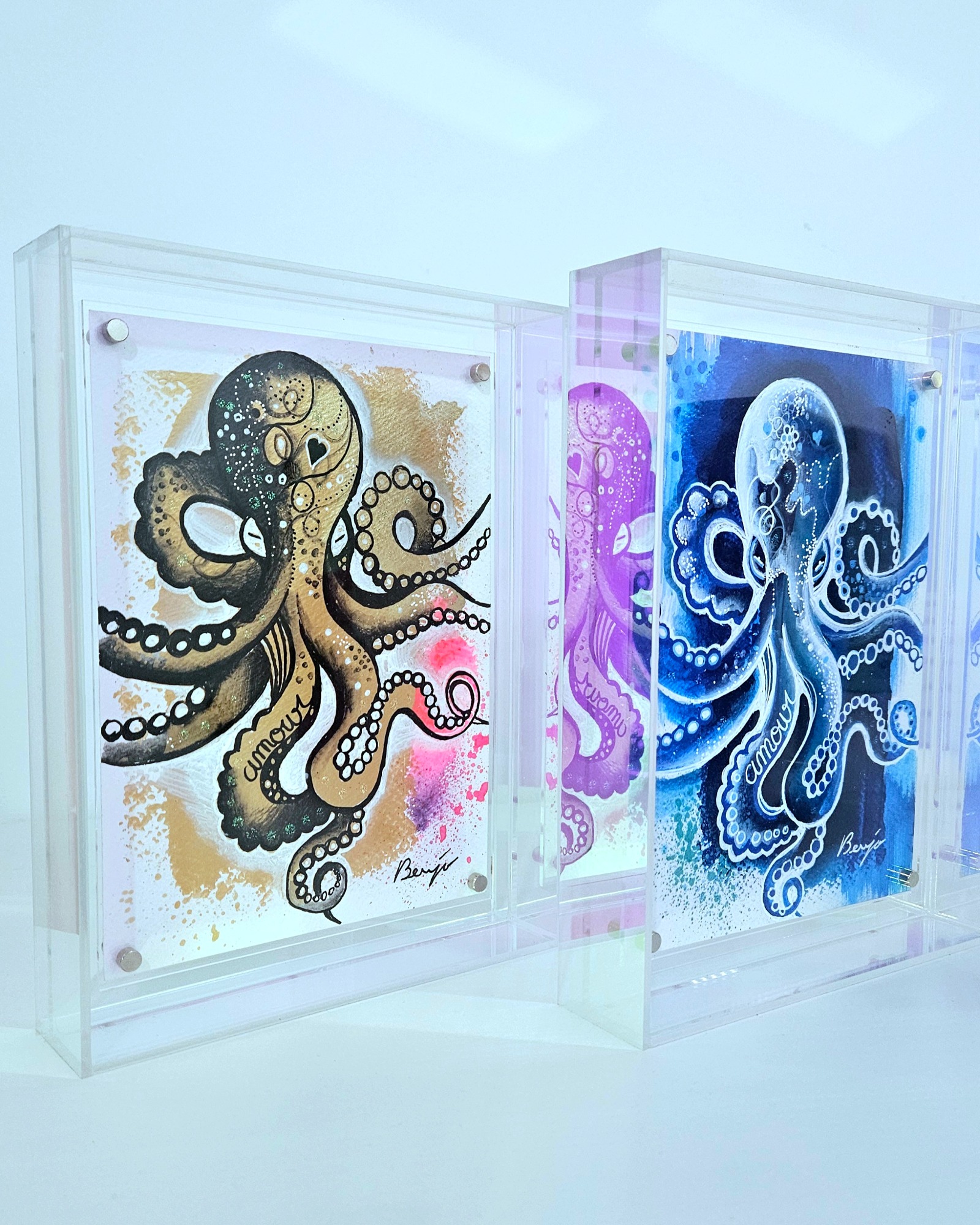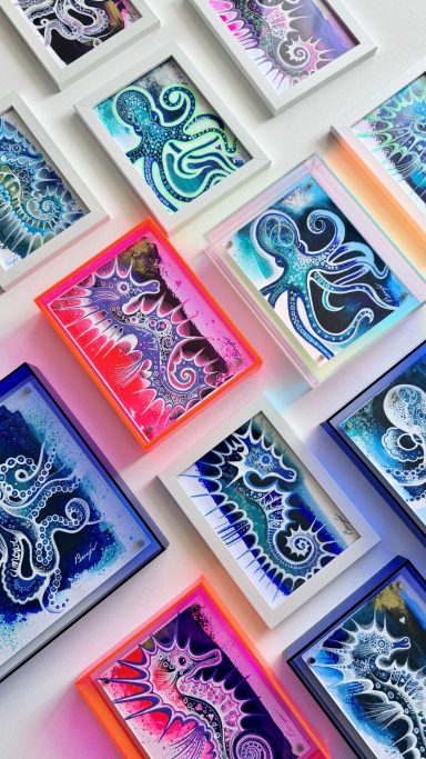 J'aime proposer des œuvres accessibles à tous, que l'on puisse offrir ou s'offrir sans se priver. Ainsi parfait pour égayer un petit coin de la maison…