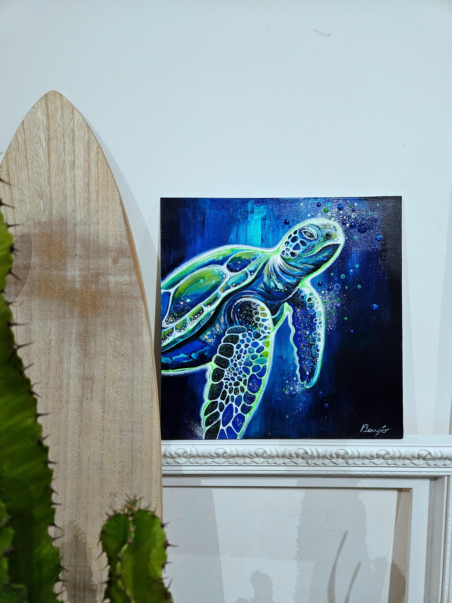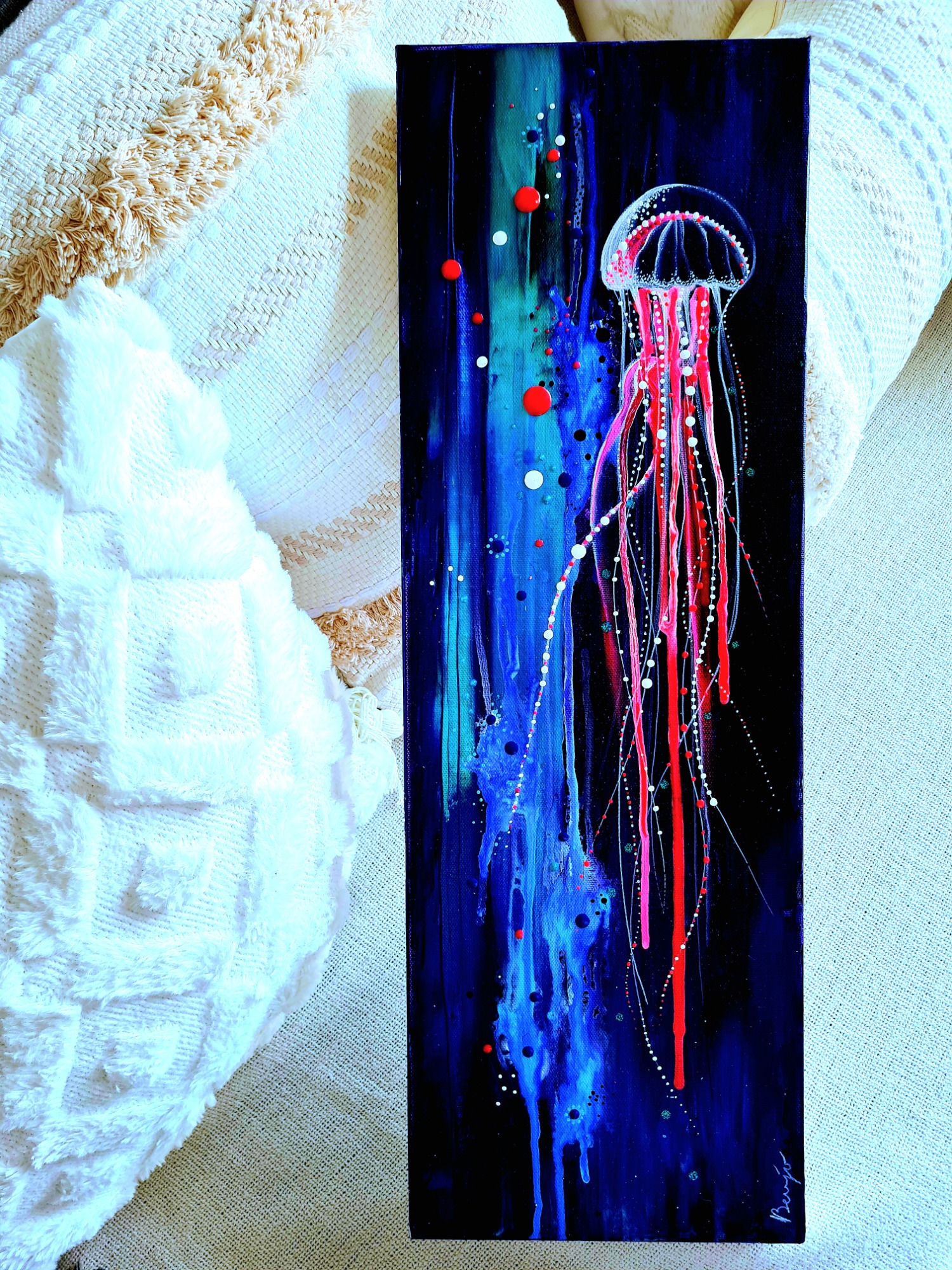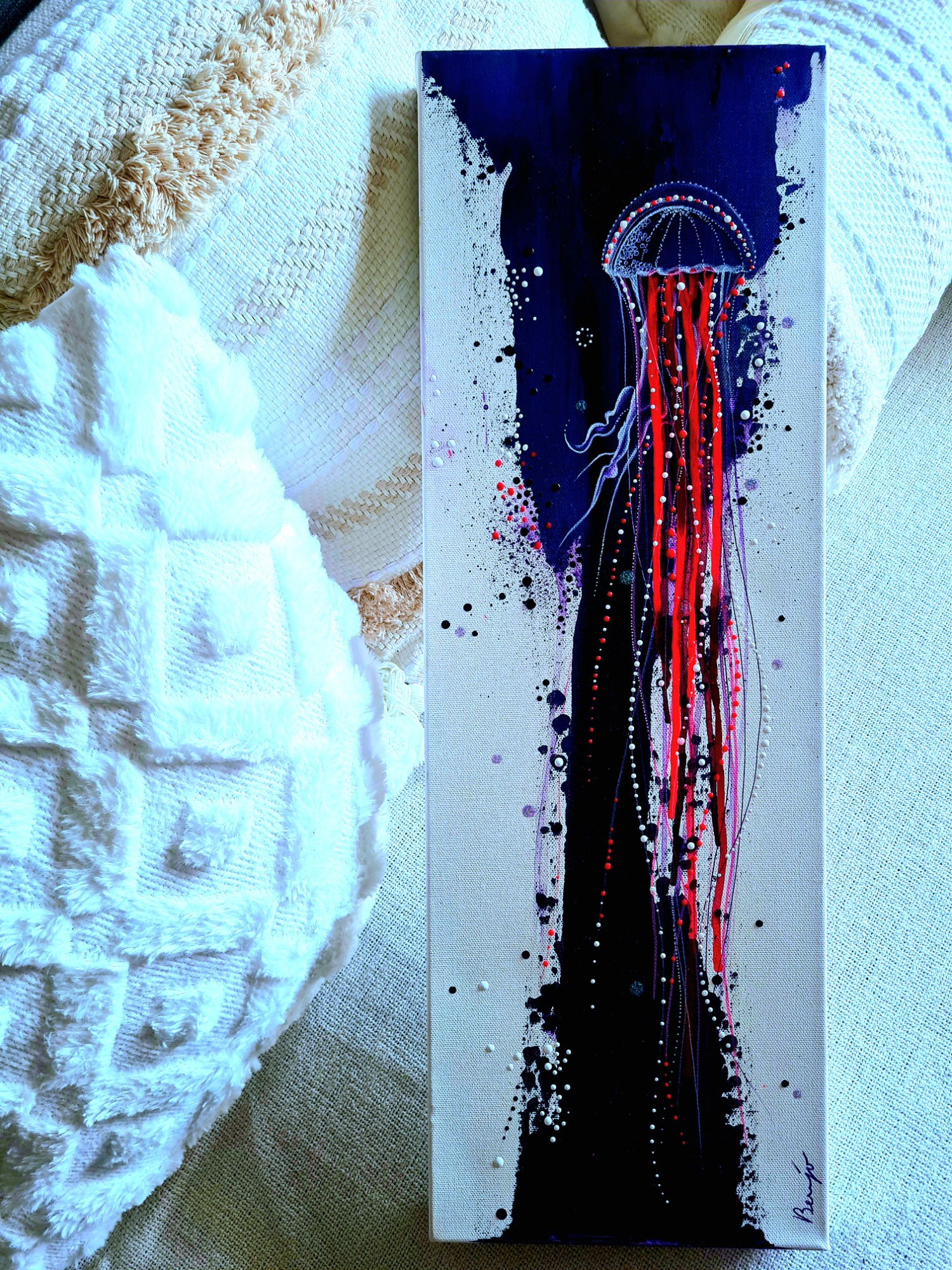 J'aime proposer des œuvres accessibles à tous, que l'on puisse offrir ou s'offrir sans se priver. Ainsi parfait pour égayer un petit coin de la maison…