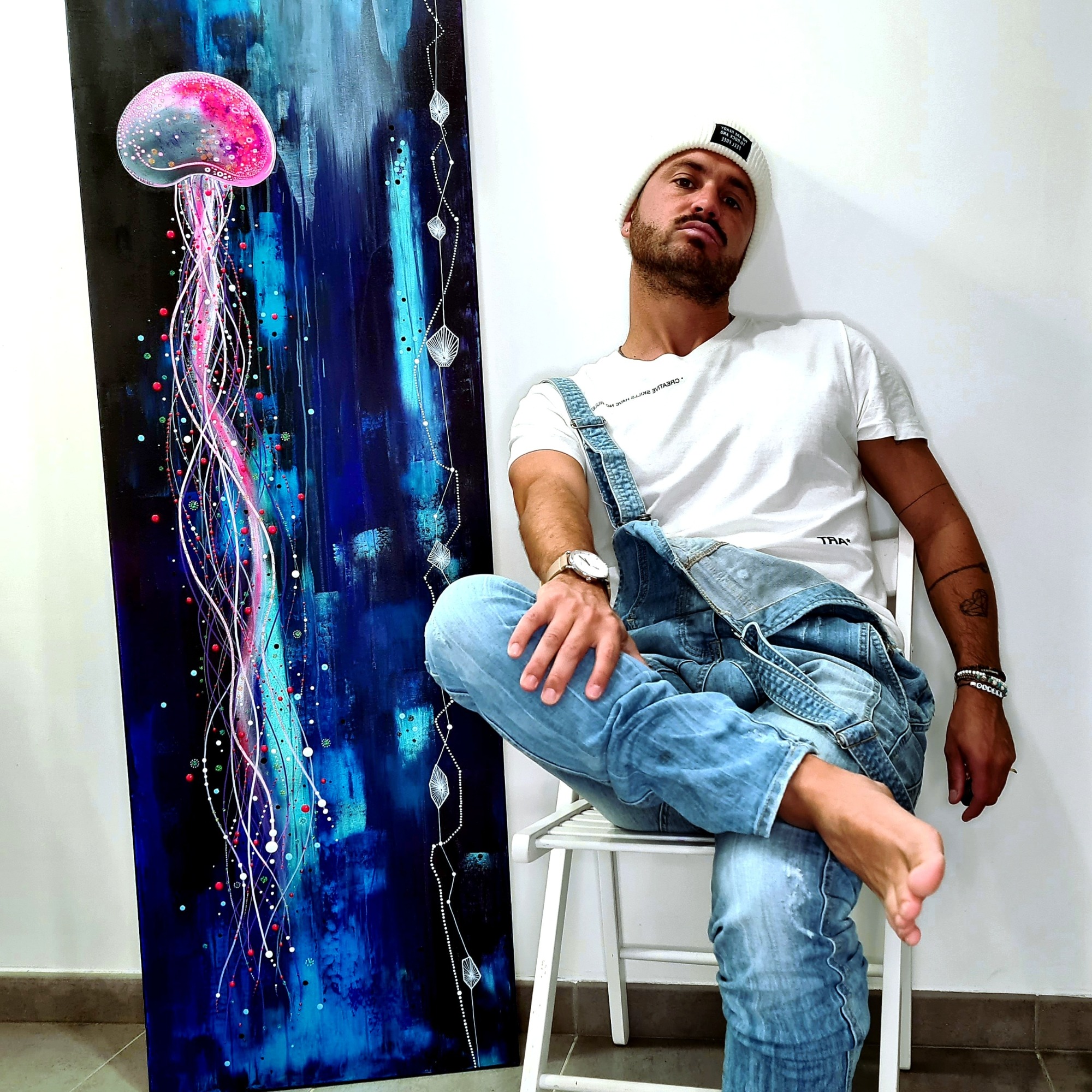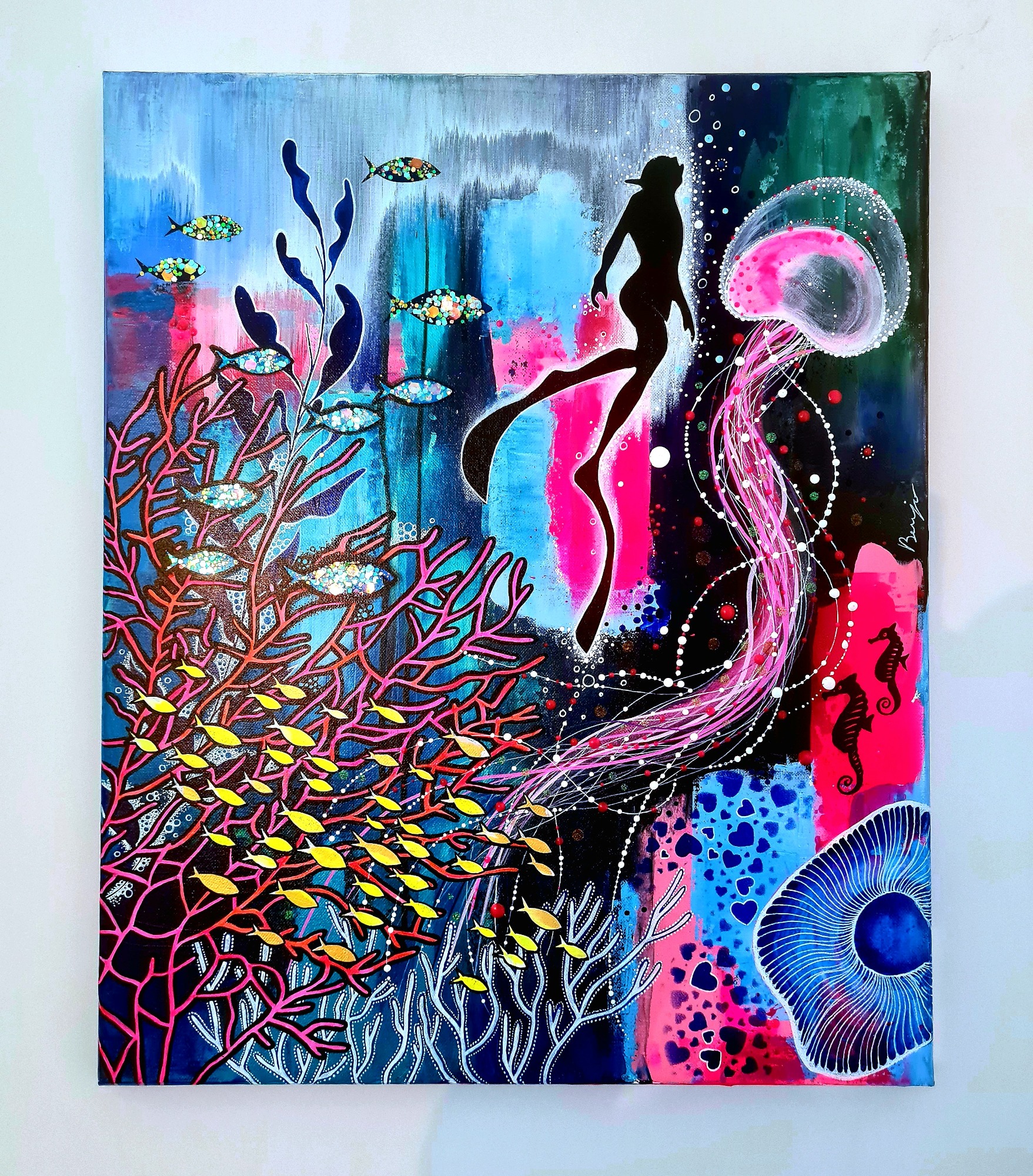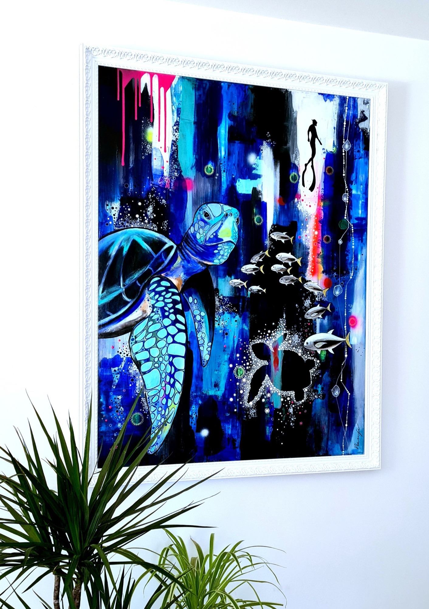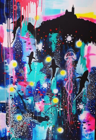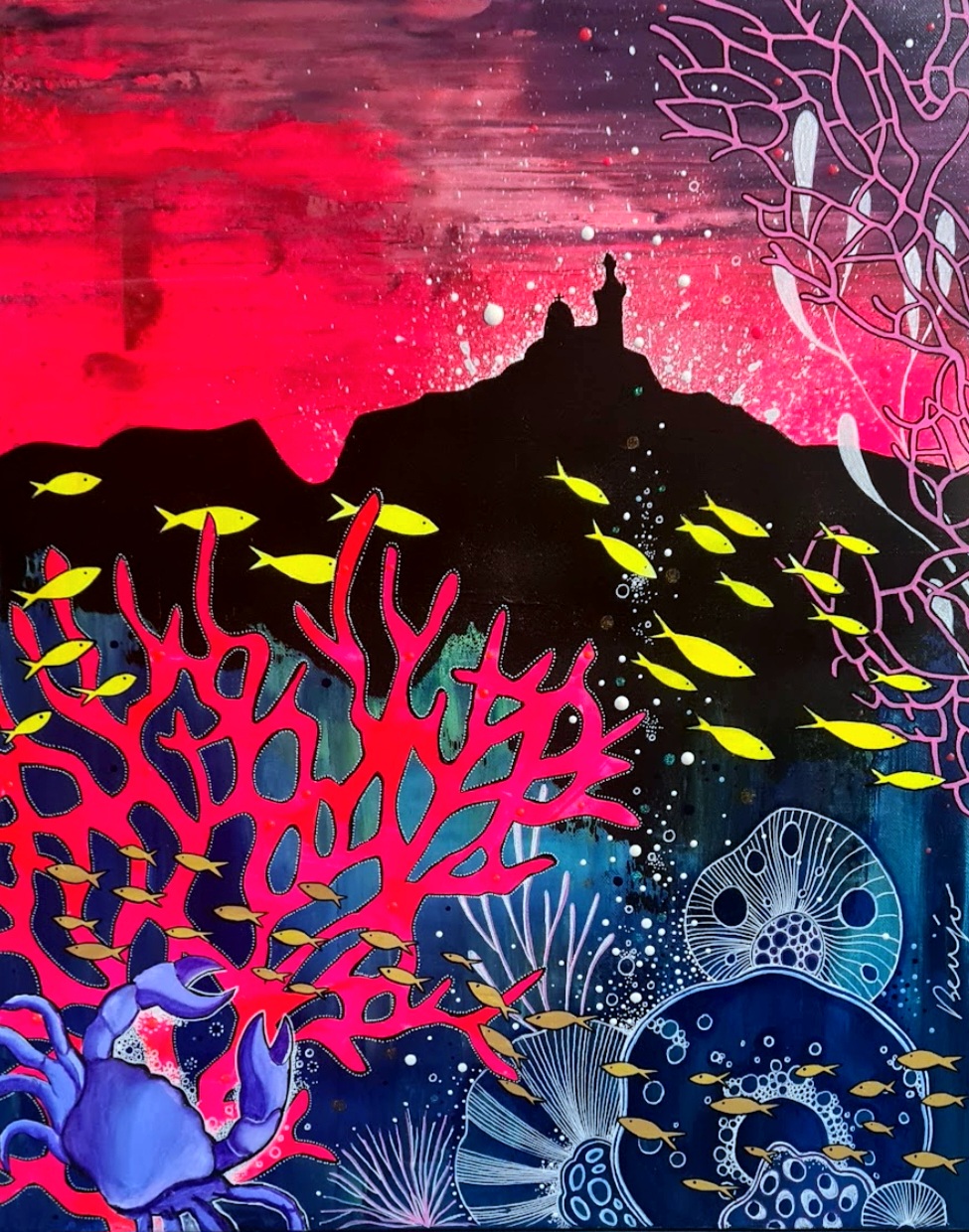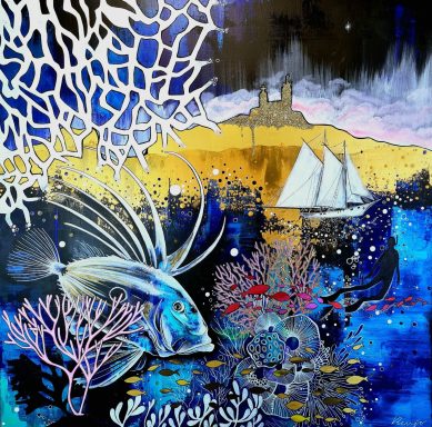 (89x116cm) 10/2023 1490€ + cadre blanc Remporte en 2024 le 1er prix du jury lors du concours de peinture à Sausset-les-Pins.