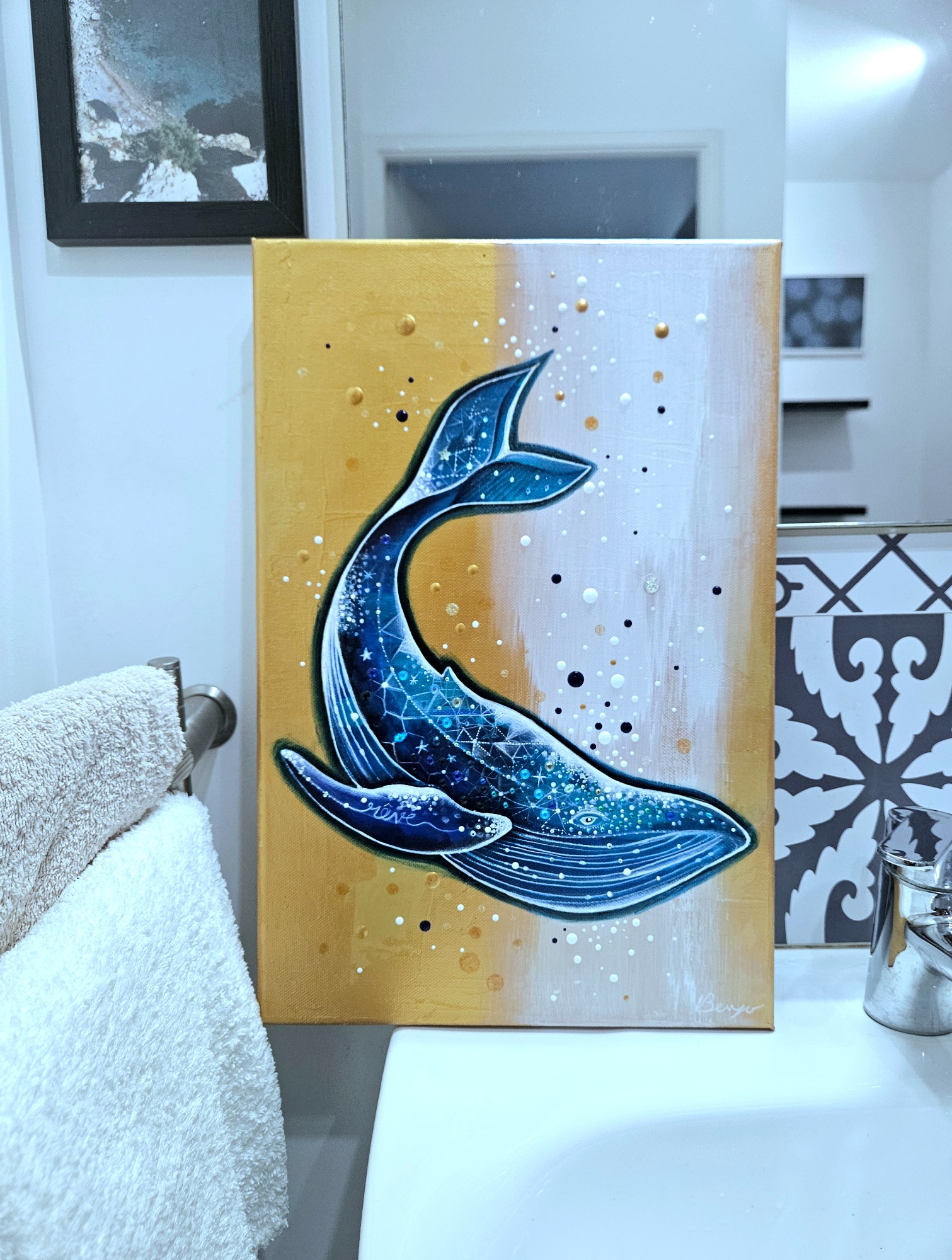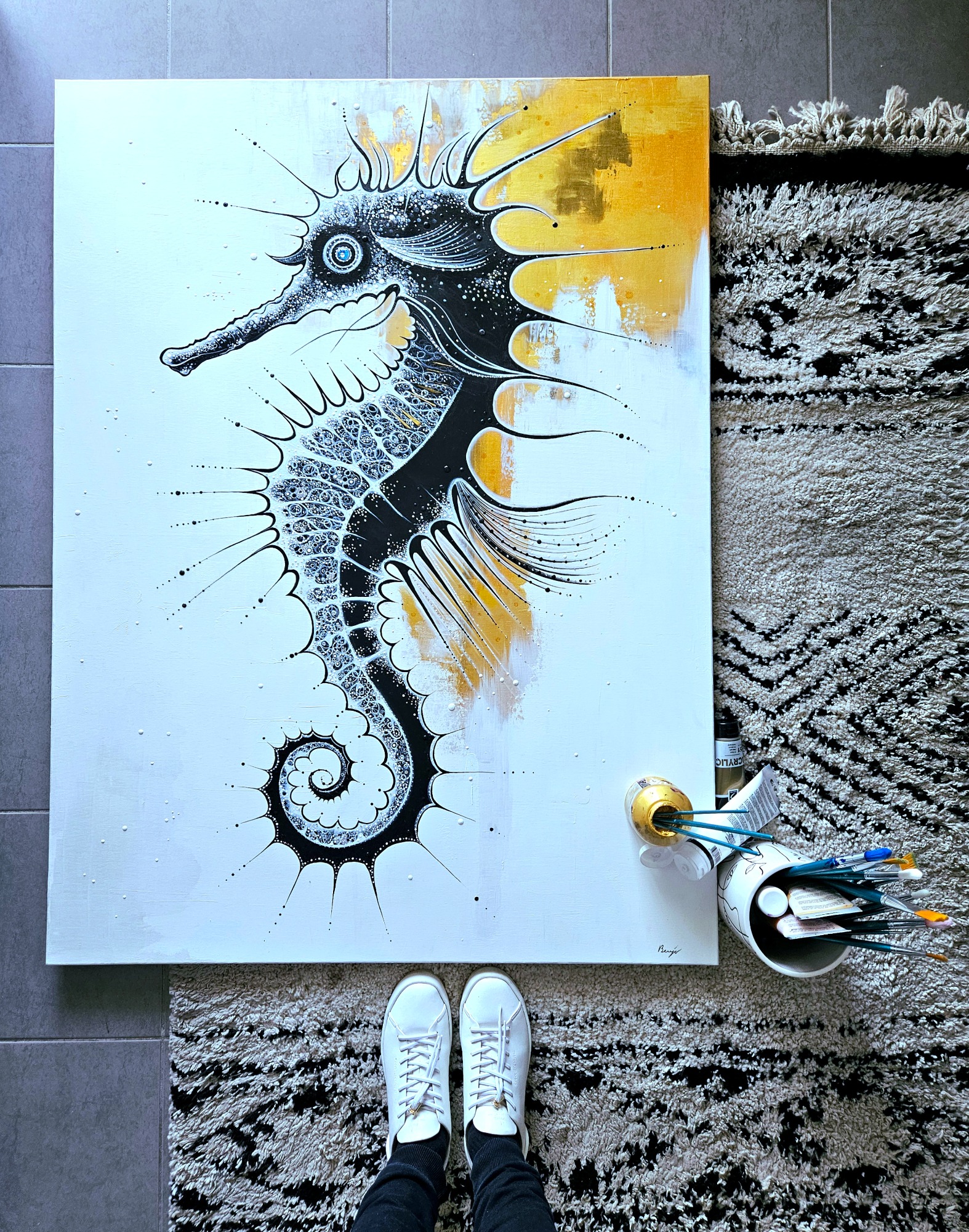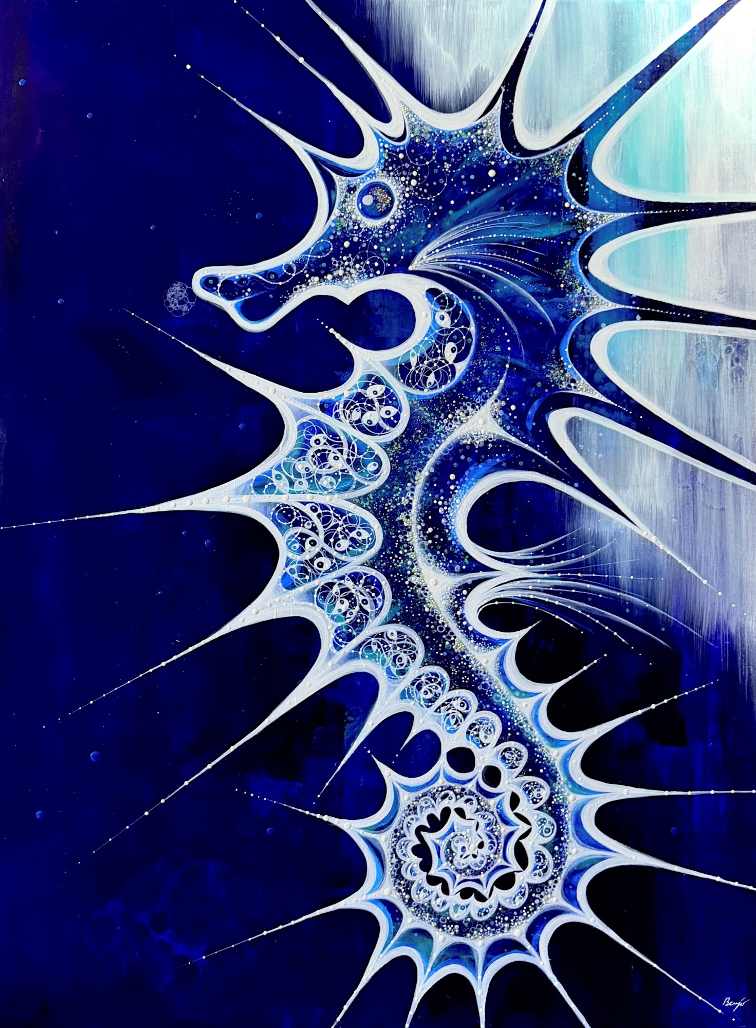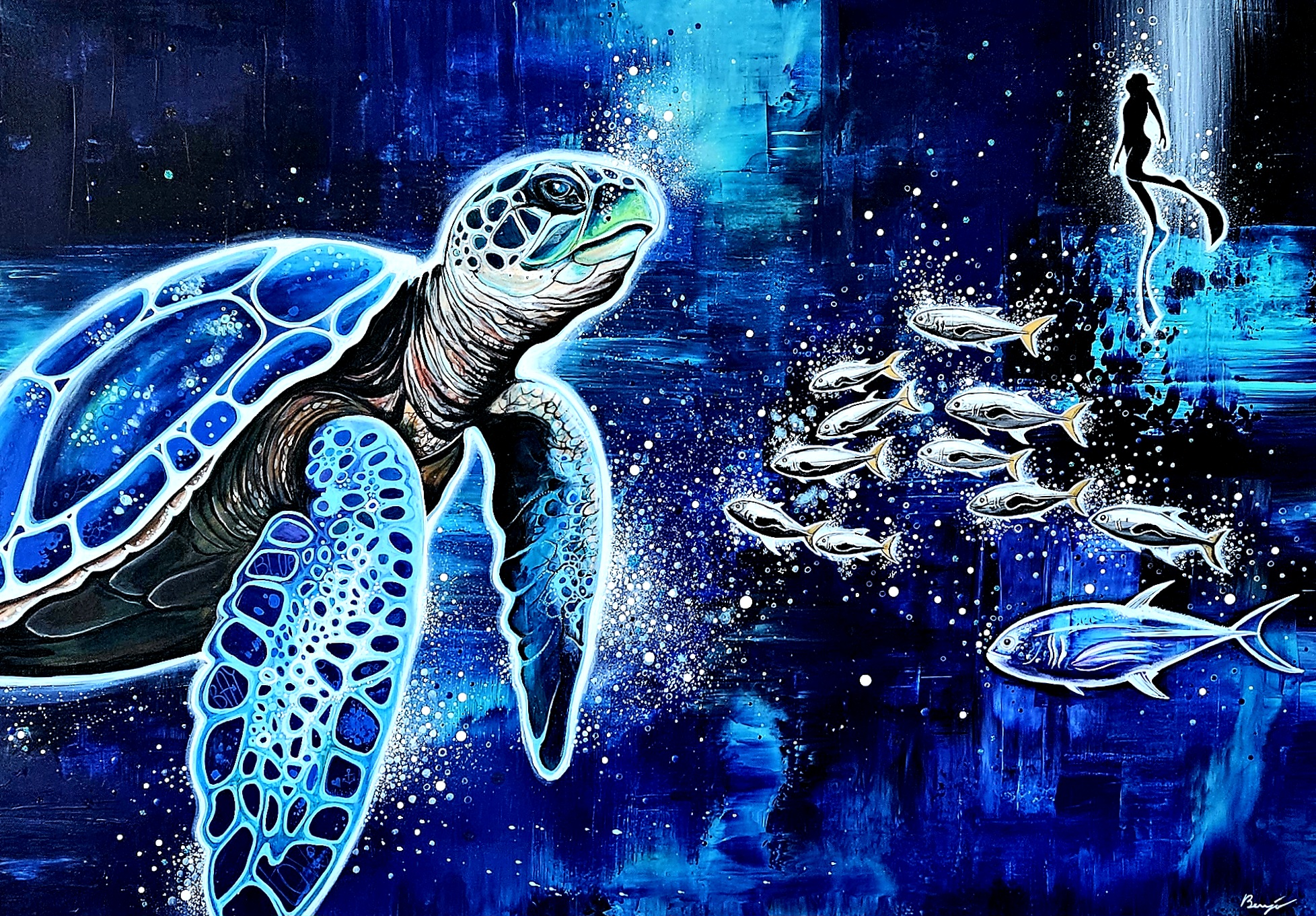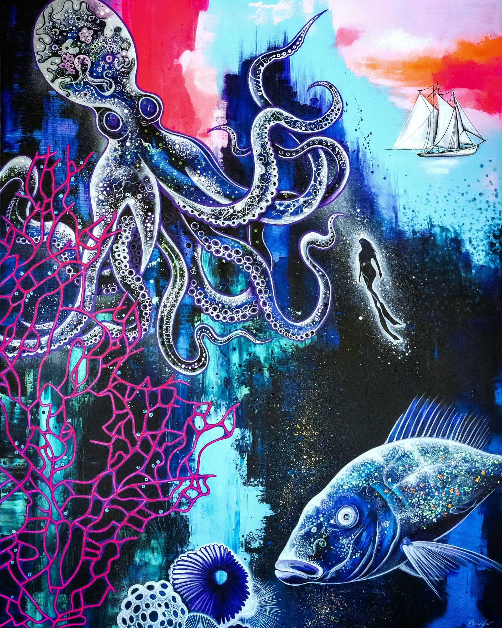 (89x116cm) 10/2023 1490€ + cadre blanc Remporte en 2024 le 1er prix du jury lors du concours de peinture à Sausset-les-Pins.