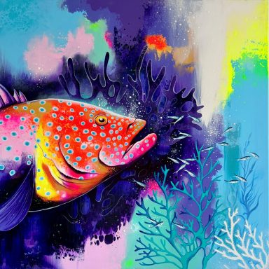 (100x100cm) 03/2025 1650€ + caadre blanc Remporte en 2025 le 1er prix du public lors du concours de peinture au Rove.