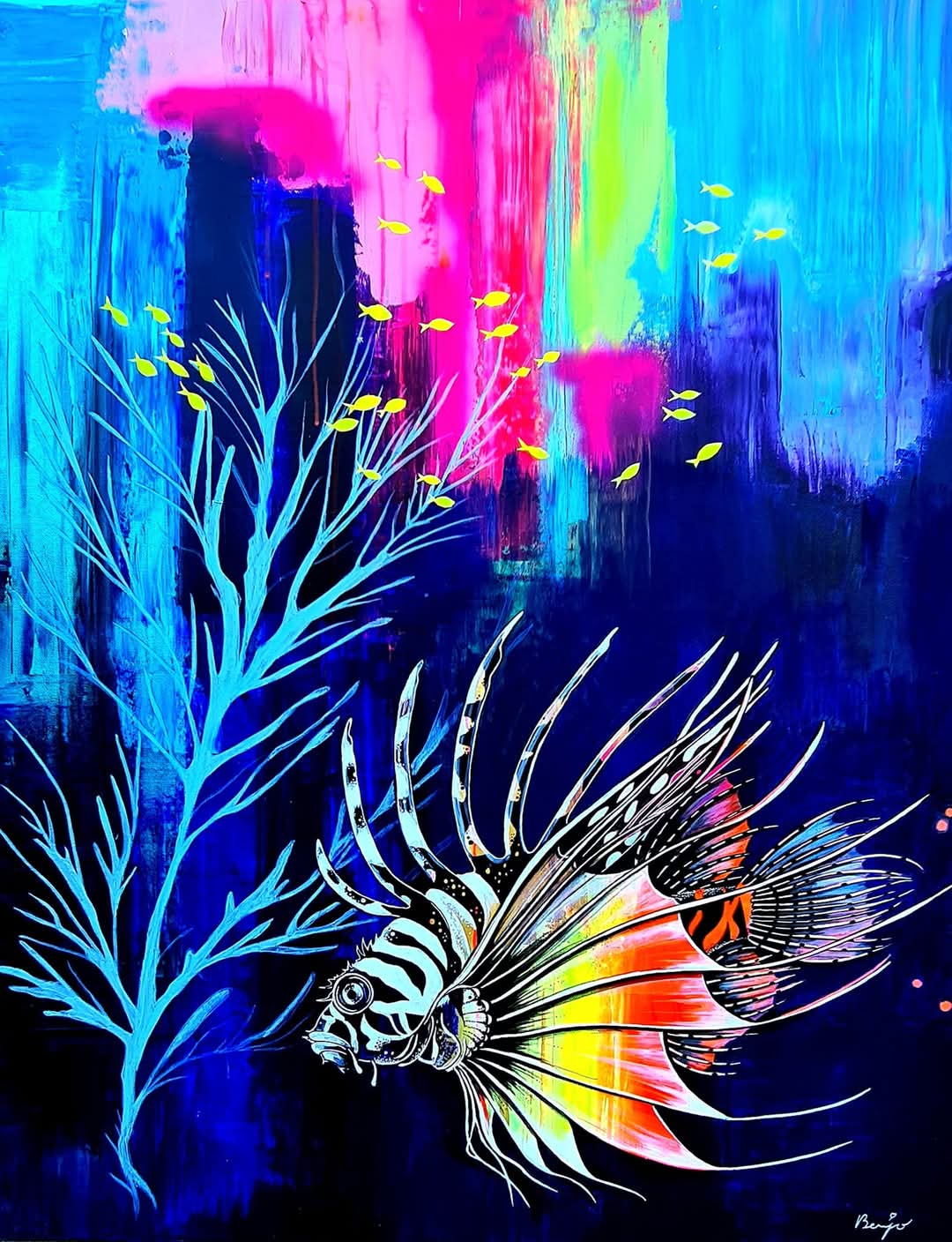 (46x55cm) 07/2023 680€ Remporte en 2023 le 1er prix de peinture à Saint Chamas sur le thème la biodiversité.